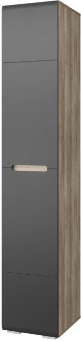 Размер: (ШхВхГ) 402х2176х460 Цветовое решение: Корпус: ЛДСП - Дуб Каньон Фасад: МДФ - Графит Опоры: Пластик Пенал укомплектован полками. Модуль данной модели универсален, собирается как на правую, так и на левую стороны. Товар поставляется в разобранном виде.
